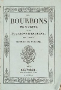CUSTINE (Robert de). Les Bourbons de Göritz et les Bourbons d'Espagne. Paris. Ladvocat. 1839. 1 …