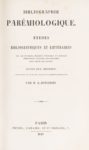 GRATET-DUPLESSIS. Bibliographie Parémiologique... Paris. Potier. 1847. 1 volume in-8, …