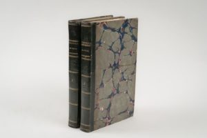 JACQUEMONT. Victor. Correspondance, avec sa famille et plusieurs de ses amis, pendant son voyage dans l'Inde. 1828-1832. Paris. H. Fournier. 1833. 2 volumes in-8, demi-basane verte maroquinée, dos lisse. Discret petit travail de ver dans deux mors. Edition originale illustrée d'une carte dépliante.