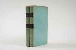 KRÜDNER. Mme de. Valérie, ou Lettres de Gustave de Linar à Ernest de G Paris. Henrichs. 1804. 2 volumes in-12, cartonnage bleu à la Bradel légèrement frotté, dos lisses ornés et passés, pièces de titre et de tomaison en noir. Édition originale. Quelques rousseurs.