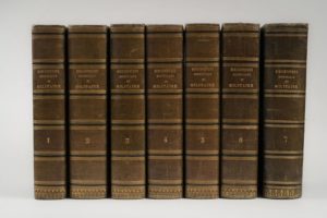 LISKENNE et SAUVAN. Bibliothèque historique et militaire, dédiée à l'Armée et à la Garde Nationale de France. Paris. Administration. 1851-1853. 7 volumes petit in-4, demi-basane verte, dos lisses. Nombreuses planches et cartes hors-texte. Rousseurs.