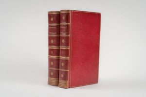 [MANUSCRIT] - [DAMPMARTIN. Anne-Henri Cabet de]. Catalogue historique de quelques volumes des archives manuscrites du Dépôt de la Guerre. Paris. 1817. 2 volumes in-8, maroquin rouge à long grain, dos à faux-nerfs ornés, encadrement de simple filet doré sur les plats, tranches dorées, dentelle intérieure. [4] pp. ; XXVIII pp. ; 404 pp. -[4] pp. ; 647 pp. C'est le 20 avril 1816 que le vicomte de Dampmartin fut nommé par Louis XVIII bibliothécaire du Dépôt de la Guerre. Les deux volumes inédits que nous présentons contiennent le fruit d'un labeur de 18 mois : lorsque Clarke donna en septembre 1817 sa démission du ministère de la Guerre, Dampmartin perdit son poste en même temps que son protecteur. Dans son introduction au ton très personnel, il raconte, par exemple, la visite émouvante du duc d'Angoulême et du duc de Berri, Dampmartin retrace l'historique du dépôt de la Guerre et souligne l'importance des documents qui y sont conservés : "Son exploitation peut seule soutenir l'historiographe ». Texte très lisible, entièrement réglé. Précieux exemplaire de l'auteur avec double vignette ex-libris. Très bel exemplaire.