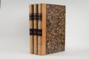 MORCELLI. Stefano Antonio. Africa Christiana Brescia. Bettoni. 1816-1817. 3 volumes in-4, demi-veau blond XIXème, dos lisses ornés, pièces de titre et de tomaison brunes. Illustré de deux beaux portraits-frontispices et 3 cartes à double page. Cette luxueuse publication forme une histoire de l'Afrique chrétienne des premiers siècles, racontée à partir des sources patristiques.
