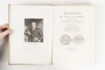 SACCO. Luigi. Trattato di vaccinazione, con osservazioni sul giavardo e vajuolo pecorino. Milano. Dalla tipografia Mussi. 1809. 1 volume in-4, cartonnage d'attente postérieur, pièce de titre beige, non coupé. Edition originale, illustré d'un portrait-frontispice du Dr Jenner et de 4 planches dépliantes en couleurs. C'est le premier ouvrage majeur publié sur ce sujet en Italie. Infime trou de vers sur les premiers feuillets.