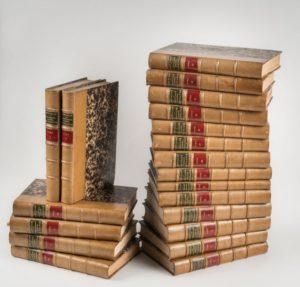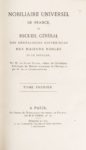 SAINT-ALLAIS. Nobiliaire universel de France. Paris. Bachelin-Deflorenne. 1872-1875. 20 volumes in-8, veau havane légèrement frotté, dos à nerfs, pièces de titre et de tomaison de maroquin rouge et vert. Un petit accroc à une coiffe inf. Un tome 21 a été publié en 1877. Il manque souvent.