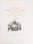 THOUMAS. Général. Les Anciennes armées françaises. Exposition rétrospective militaire du Ministère de la guerre en 1889. Paris. Launette. 1890. 8 volumes grand in-4, demi-percaline rouge, en feuilles, sous chemises éditeur. Cet ouvrage, illustré de 18 planches, fut publié à l'initiative des organisateurs de l'Exposition Universelle pour "faire connaître aux générations actuelles ce qu'a été l'armée française depuis son origine jusqu'à la veille de la guerre de 1870".