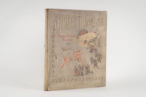 VANIER. Léon. Armée française. Nouvel alphabet militaire. Paris. Léon Vanier. 1883. 1 volume petit in-4, toile grise de l'éditeur illustrée en couleurs . Amusant ouvrage pour enfants en forme de dictionnaire, illustré 24 planches en couleurs en couleurs par H. de Sta. Couverture passée, les feuillets sont légèrement salis et quelques-uns présentent de petites déchirures. Ex-dono au faux-titre.