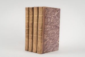 [VAUDREUIL. Pierre-Louis Rigaud de]. Tableau des moeurs françaises aux temps de la chevalerie Paris. Adrien Egron. 1825. 4 volumes in-8, demi-basane havane, dos lisses ornés et insolés. C'est une invention de l'auteur, Pierre-Louis de Vaudreuil pour accréditer son propre récit exalté et reconstitué de la chevalerie. Tirage à 1050 exemplaires numérotés à la main, avec un feuillet de musique notée. Rousseurs.