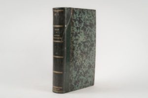 VIOLLET. Essai pratique sur l'établissement et le contentieux des usines hydrauliques. Paris. Carilian-Goeury. 1840. 3 ouvrages en 1 volume in-8, demi-basane verte de l'époque légèrement épidermée, dos lisse orné. suivis de : Notice sur l'exactitude et l'usage du frein dynamométrique pour la mesure de la puissance des usines. Paris. Carilian-Goeury. 1839. Théorie des puits artésiens. Paris. Carilian-Goeury. 1840. Premières éditions, illustrées de 11 planches dépliantes hors texte dont 2 volantes. Envoi manuscrit de l'auteur au professeur A. Leblanc, à chaque ouvrage. Tampons de la bibliothèque Léon Dru et de l'entreprise de sondages Paulin et René Arrault. Feuillets 39-42 détachés. Rousseurs.