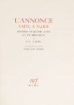 CLAUDEL. Paul. L'Annonce faite à Marie. [Paris]. NRF. 1950. 1 volume in-folio en feuilles, …