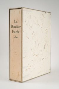 GENEVOIX. Maurice. La dernière harde. Paris. Vialetay. 1953. 1 volume in-4 en feuilles, sous couverture illustrée, chemise et étui éditeur légèrement frotté. Ouvrage de vènerie orné de 70 bois gravés en couleurs d'André Margat,. 1 des 165 exemplaires numérotés sur Rives, signés par l'auteur et l'artiste, comprenant la décomposition d'une planche.