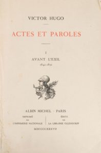 HUGO. Victor. Actes et paroles. Paris. Albin Michel, Ollendorff, Imprimerie Nationale. 1937-1940. …