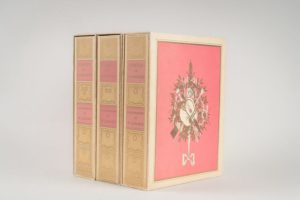 LA FONTAINE. Jean de. Contes. Paris. Les heures claires. 1970. 3 volumes in-8, en feuilles, couvertures à rabats, sous chemises et étuis d'édition en papier décoré. Illustrés d'aquarelles d'Henry Lemarié. 1 des 300 exemplaires sur vélin de Rives accompagné d'une suite en noir avec remarques.