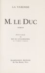 LA VARENDE. Jean de. M. le Duc. Paris. Flammarion. 1958. 1 volume in-12, broché, à grandes marges. Édition originale. 1 des 80 exemplaires numérotés sur papier pur chiffon d'Arches, premier papier.