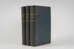LEGRAND. Maxime. Étampes pittoresque. Étampes. Humbert Droz. 1902-1907. 3 volumes in-8, pleine toile bleue, dos lisses, titre doré, couvertures illustrées conservées. Édition illustrée de 47 planches hors-texte dont 1 dépliante. Papier jauni et fragile. Quelques notes marginales au crayon. 10 ff. quadrillés vierges sont intercalés après chaque page de titre, et entre les pp. 204 et 205.