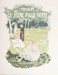TOULET. Paul-Jean. La jeune fille verte. Le livre contemporain. 1953. 1 volume in-4, en feuilles, sous chemise et étui éditeur. Illustré de bois en couleurs par Pierre-Eugène Clairin. 1 des 130 exemplaires numérotés, sur papier d'Arches, celui-ci spécialement imprimé pour Henri Bonnasse. Est joint le menu illustré d'un bois en couleurs.