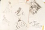 VAN HOUTEN. Georges. Arlequinades. Album de douze dessins. Paris. Sauvage. (1919). 1 volume grand in-folio, en feuilles, sous couverture jaune à rabat illustrée par deux dessins en couleurs de Van Houten, intérieure illustré de motifs. Couverture fragile légèrement empoussièrée, avec plusieurs déchirures en marge, et petits manques au dos. Album de 12 planches en couleurs représentant divers personnages de la Comédia del'Arte. Exemplaire d'artiste, non-numéroté, comprenant un envoi manuscrit de Georges Van Houten sur la justification de tirage. Exemplaire unique enrichi de 12 croquis originaux de Van Houten, à la plume, lavis ou au crayon, dont 10 au format in-folio et 2 en format plus petit.