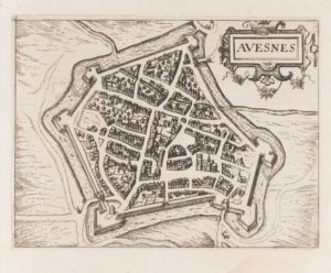 AVESNES. fin XVIème - début XVIIème. 18,6 x 16,5 cm. Gravure sur cuivre. Mouillure pâle en marge inférieure, trace de pliure.