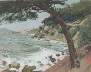 BAUDIER. Paul. Bord de mer dans le sud de la France. Gouache originale (41,5 x 32,5 cm) sur papier …