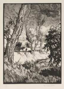 BAUDIER. Paul. Charrette au bord d'un Ruisseau Bois gravé contresigné et n° 13/60. 31 x 46, 5 …