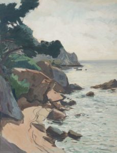 BAUDIER. Paul. Falaise en Méditerranée. Gouache originale signée en bas à droite sur papier …