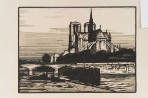 BAUDIER. Paul. Notre-Dame depuis les quais. Gravure sur bois en 2 tons. (58 x 44 cm)