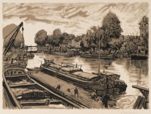 BAUDIER. Paul. Quai de Seine. Gravure sur bois en 3 tons, contresignée et numérotée (7/20). …