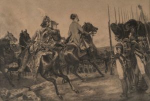 BOISMOREAU. Bataille d'Iéna. Tours. (1893). 34 x 46 cm, pierre noire sur papier brun, titre …