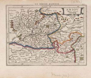 (CARTE D'ANJOU). MERCATOR. Anjou. [Amsterdam]. [Jansson]. ca 1630. Gravure sur cuivre. 23,5 x 18 cm. Epreuve coloriée en contours. Texte en français au dos.