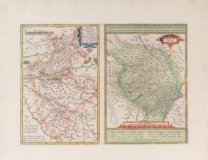 (CARTE DU BLAISOIS - CARTE DU LIMOUSIN). [ORTELIUS]. TEMPORIUS, Joannes. FAYANUS, Jo. Blaisois. Blesiensis Territorii - Lemovicum totius et confinium provinciarum Deux cartes sur la même feuille. [1609]. Gravure sur cuivre. 59 x 46 cm. Epreuve en coloris d'époque. Texte descriptif en latin au dos.