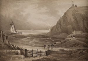 ECOLE FRANCAISE DU XIXEME SIECLE. Ile de Saint-Hélène. 1829. Lavis d'encre. 8.5 x 12.5 cm. Cadre …
