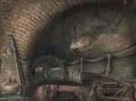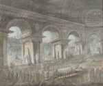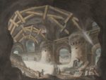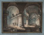 GÉLIGNY. Pierre-Antoine. [Suite d'aquarelles d'un prisonnier en Espagne]. (1793-1802). Sept dessins gouachés sur vergé bleu ou blanc, contrecollés sur papier fort, certains encadrés d'un bord noir ou entourés d'un liseré de papier doré collé. Les deux pour certains. De formes rectangulaires, tous entre 40 cm de largeur sur 60 cm de longeur. Titre et date à l'encre au bas du recto de la vue a, "Vue de l'intérieur d'une Prison, inventée et Dessinée par Géligny, prisonnier de Guerre en Espagne (a Valladolida), le 28 Vendémiaire An 3". Les vues c, d et e sont signées à l'encre "Géligny inv'" et certaines sont datées. Des poèmes manuscrits conemporains (encre) au verso des vues b et d et au recto de la vue a. Quelques rousseurs et accrocs sans gravité. "Quant à sa probité, son instruction, zèle et intelligence, je ne puis me refuser sans injustice de lui rendre les éloges qu'il mérite..." selon l'Ingénieur en chef des Ponts et Chaussées Boizot au sujet de Pierre Antoine Géligny, ingénieur depuis 1791. Le jeune ingénieur est enrôlé dans l'Armée révolutionnaire. Parti s'occuper du pont de Limbourg, il sera fait prisonnier par les espagnols du 28 vendémiaire de l'an III au 18 vendémiaire de l'an IV, passant de Vittoria à Burgos et enfin à Valladolid qui semble l'avoir particulièrement marqué. Géligny est gravement atteint physiquement et moralement, et commence sa prose peinte - il date de l'an III la première des vues carcérales et sa dernière aquarelle est datée de 1802. Plusieurs années durant, Géligny médiatise ses souffrances et ses angoisses dans des dessins. Boizot nous le décrit encore "martyr" et dans un "état facheux de démence". Géligny décèdera en juillet 1809, à Paris ou il était né. Pauvre et isolé.