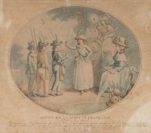 HUET. Jean-Baptiste. Autel de la liberté française. Paris. Hétier. (fin du XVIIIème siècle). Gravure en couleurs. 27.5 x 31. Cadre d'époque en bois doré Mouillures. Rousseurs. Jolie gravure révolutionnaire en couleurs.