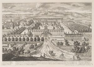 [PARIS - PERELLE, Adam]. L'Hôpital de St Louis. Paris; N. Langlois, [vers 1660]. 33,1 x 24,6 cm; cuvette 31 x 21,6 cm. Gravure sur cuivre de la vue sur l'hôpital Saint Louis.