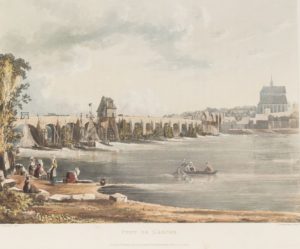 (PONT DE L'ARCHE). GENDALL, J. Pont de l'Arche. London: R. Ackermann, 101 Strand, 1821. 33,9 x 27,9 cm. Aquatinte rehaussée en couleur.