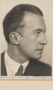 [PHOTOGRAPHIE] - MARTINIE. Henri. Portrait de Paul Eluard. (vers 1930). 22.9 x 15.5. Encadrement sous-verre. Photographie originale, tirage argentique du portrait de Paul Eluard de profil. Monté sur un carton avec la signature autographe de Paul Eluard. Tirage signé au stylo par le photographe Henri Martinie avec son adresse "Au 19 rue de Penthièvre ».
