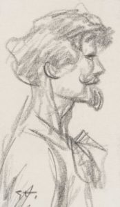 STEINLEN. Théophile. Tête d'homme vue de profil droit. Dessin au crayon, signé en bas à gauche ST, contrecollé. 7, 5 x 12, 5 cm. Cat. 1983, n°53.