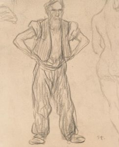 STEINLEN. Théophile. Vieillard au gilet debout 1 dessin au crayon avec esquisse sur le côté …