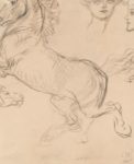 STEINLEN. Théophile. Vieillard au gilet debout 1 dessin au crayon avec esquisse sur le côté signé ST en bas à droite et étude de cheval et de visages féminins au dos. Dessin sur papier beige. 16 x 20 cm. Cat. 1982, n° 227.
