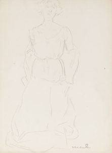 STEINLEN. Théophile. Etude de femme de face. Dessin au crayon, cachet au tampon en bas à droite. …