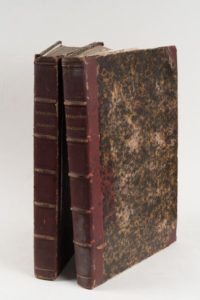 Tableaux historiques de la Révolution française. Paris. Chez l'Éditeur, Joubert, Leblanc, Galignani, Gérioux. 1817. 2 volumes in-folio, demi-chagrin bordeaux à coins, dos à nerfs. Usures. Manques. Déchirures. Rousseurs. Mouillures. Panorama iconographique de la Révolution française, comprenant 225 planches, dont 65 Portraits des Hommes célèbres. Le premier volume contient les États-Généraux, l'Assemblée constituante et l'Assemblée législative. Le deuxième se compose de la Convention nationale et du Gouvernement directorial. Planche n°74 remplacée. Il manque 3 planches.