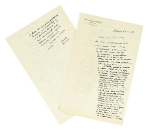 Manoscritti a inchiostro nero. Alcune buste conservate. Nel lotto anche 3 lettere scritte dalla moglie di Croce con firma autografa del filosofo e alcune carte dattiloscritto. Dimensioni varie. (19)
