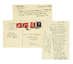 Manoscritti a inchiostro nero e blu. Molte cartoline autografe, alcune con sola firma autografa. Dimensioni varie.