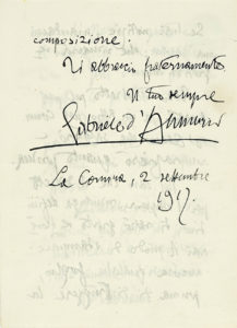 D'ANNUNZIO Gabriele, Lettera autografa firmata inviata a Francesco Salata. — Datata 2 settembre 1912, La Comina.