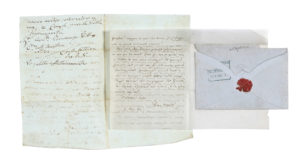 SI AGGIUNGE : Villa Tommaso. Lettera autografa, inviata a Paolo Costa, Mendrisio, Cantone Ticino, Datata 5 dicembre 1854. Un bifolio, due pagine scritte. Conservata la busta con sigillo che conteneva ambedue le lettere. Dimensioni : 110 x 135 mm. (2)