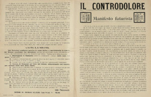 PALAZZESCHI Aldo, Il controdolore. Manifesto futurista. — Milano : Direzione del Movimento Futurista (Tip. A. Taveggia), [29 dicembre 1913]. — In-4° (mm 290x232).