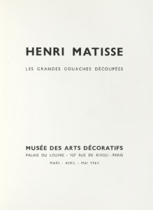 MATISSE Henri, Les grandes gouaches decoupées. — Paris : Musée des arts décoratifs, 1961. — In-8° (mm 240x180). — Pagine 74, [4].