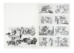 SI AGGIUNGE : Baj Enrico, Le avventure di un burattino di legno. [Firenze] : Casa Usher, [1980]. 3 fascicoli sciolti in 1 cartella editoriale in-4° (mm 345x250). Carte [14], con numerose illustrazioni, anche a piena pagina a colori, di Enrico Baj. Dedica autografa manoscritta dell'Artista a una delle tavole. (2)