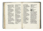 Segnatura : π4 (-π1) a-n8 o10. Testo in carattere tondo su due colonne (R 97). Iniziali xilografiche. Assente la carta π1, supplita in facsimile. Restauri marginali a parte delle carte, più evidenti a carta h2 (angolo inferiore esterno ricostruito) e alle carte da o6 a o10. Ultima carta con ampie mancanze, controfondata. Alcune fioriture e macchioline nel testo. Legatura moderna in mezza pelle con piatti in percallina, titoli e decorazioni in oro ai comparti del dorso. Rilegata in principio carta manoscritta da mani diversi di commento alla copia. (1)