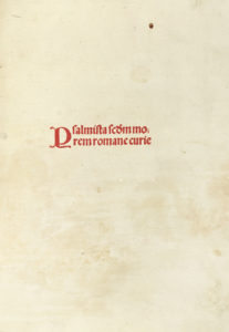 PSALTERIUM ROMANUM. — (Al colophon:) In Venetiarum urbe : jussu et impensis nobilis Octaviani Scoti Modoetinensis, impressum per Joannem Hertzog, 1497 Kalendis aprilibus. — In-4° (mm 220x160). — Carte [8], xcvj [i.e. 88].